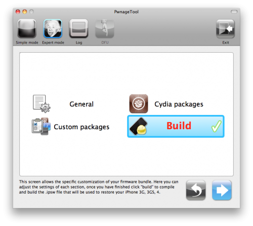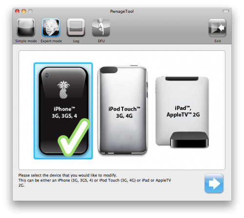 STEP 1: Start PwnageTool in “Expert mode” and then select your device