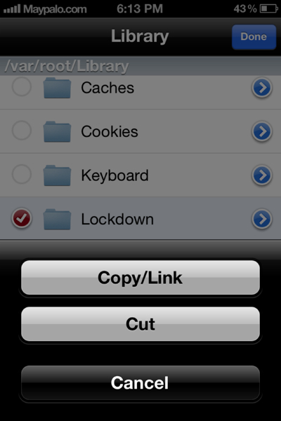 STEP 8: Head over to /var/root/Library then tap Edit > tap on clipboard icon then select paste > done.
