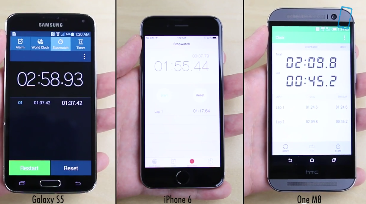 The video which has been posted below shows a speed test comparison of the flagship models of the major companies. The iPhone 6 vs Samsung Galaxy S5 vs HTC One M8.
