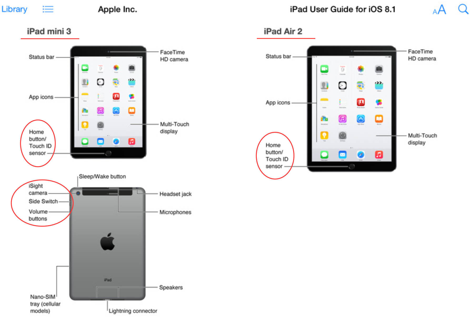 Apple had accidentally leaked the pictures and few details of the iPad Air 2 and the iPad Mini 3; at least, now we know what they are going to be called. These pictures appeared in the iPad User Guide For iOS 8.1, and were spotted by Mark Gurman of 9to5mac.