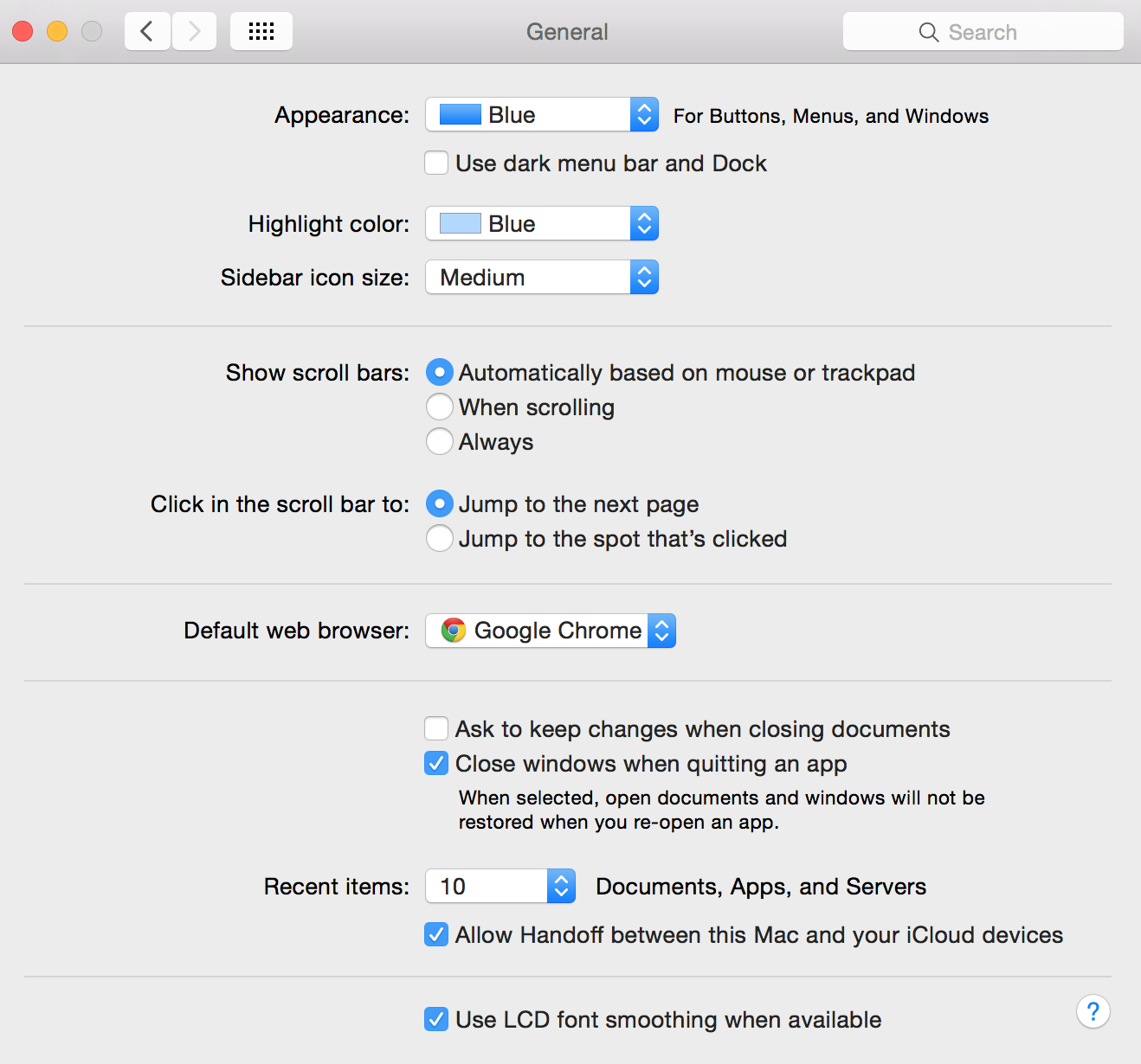 To enable continuity or handoff feature on OS X Yosemite on your Mac, head over to the Settings > General and near the bottom section there will be an option called “Allow handoff between this Mac and your iCloud devices”, simply check that box.